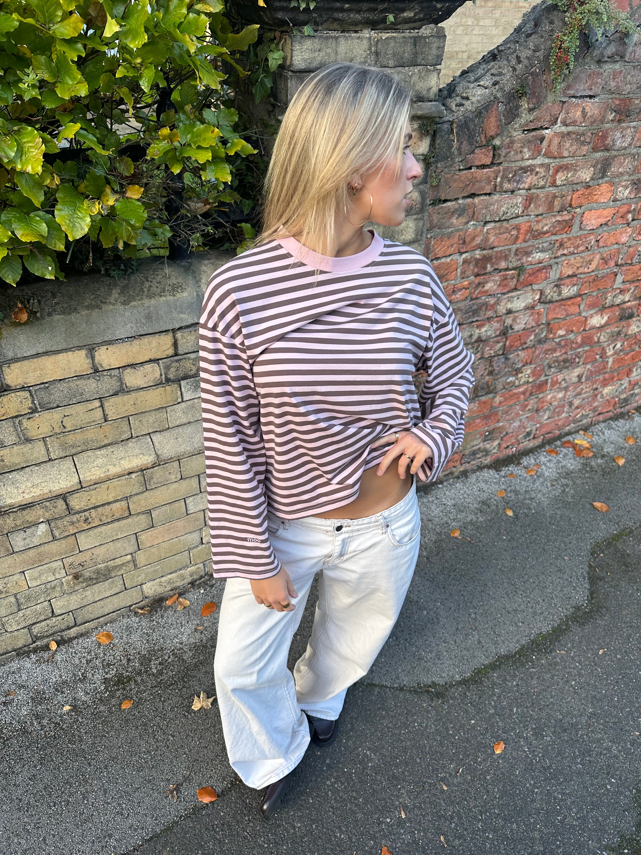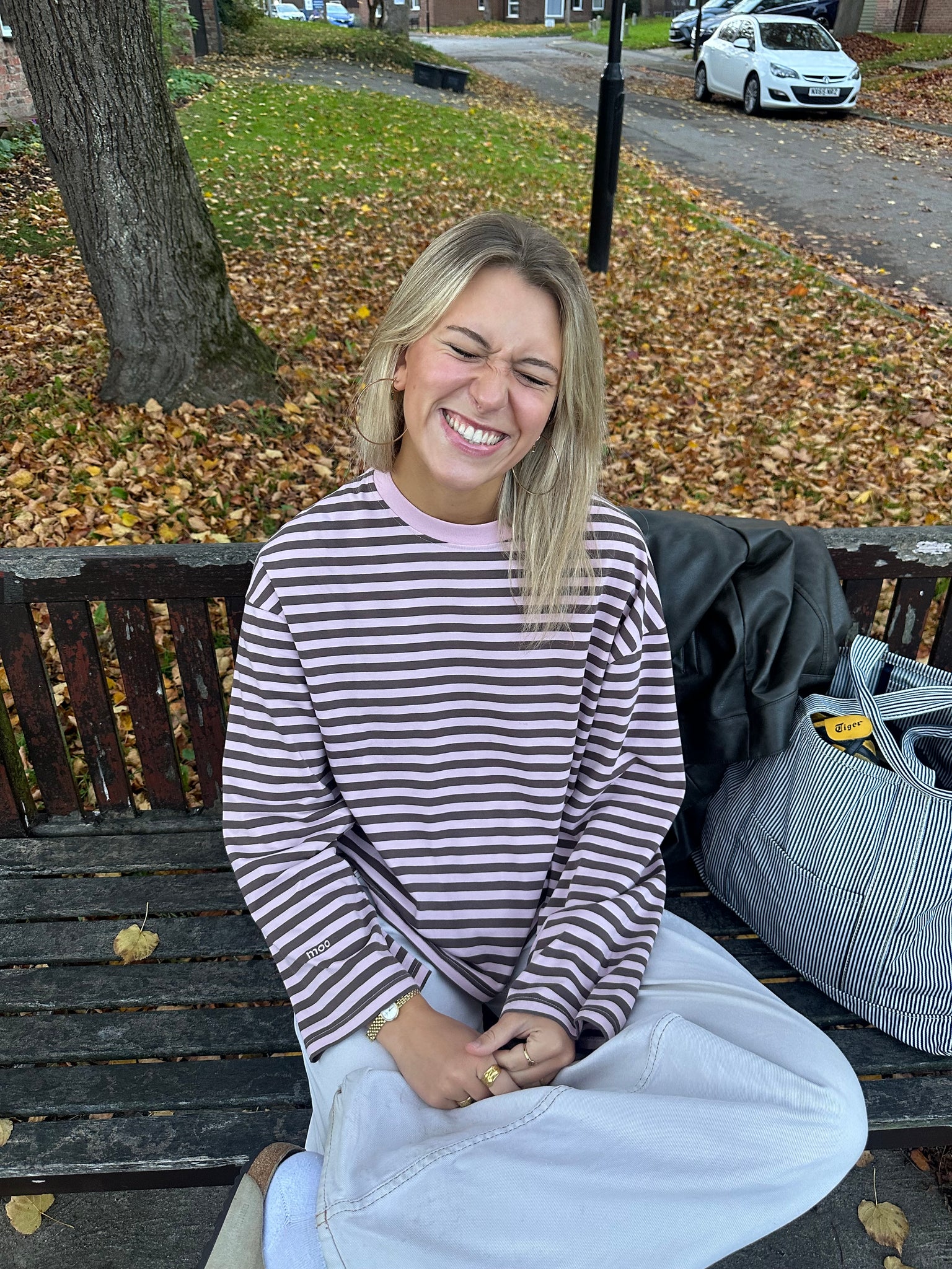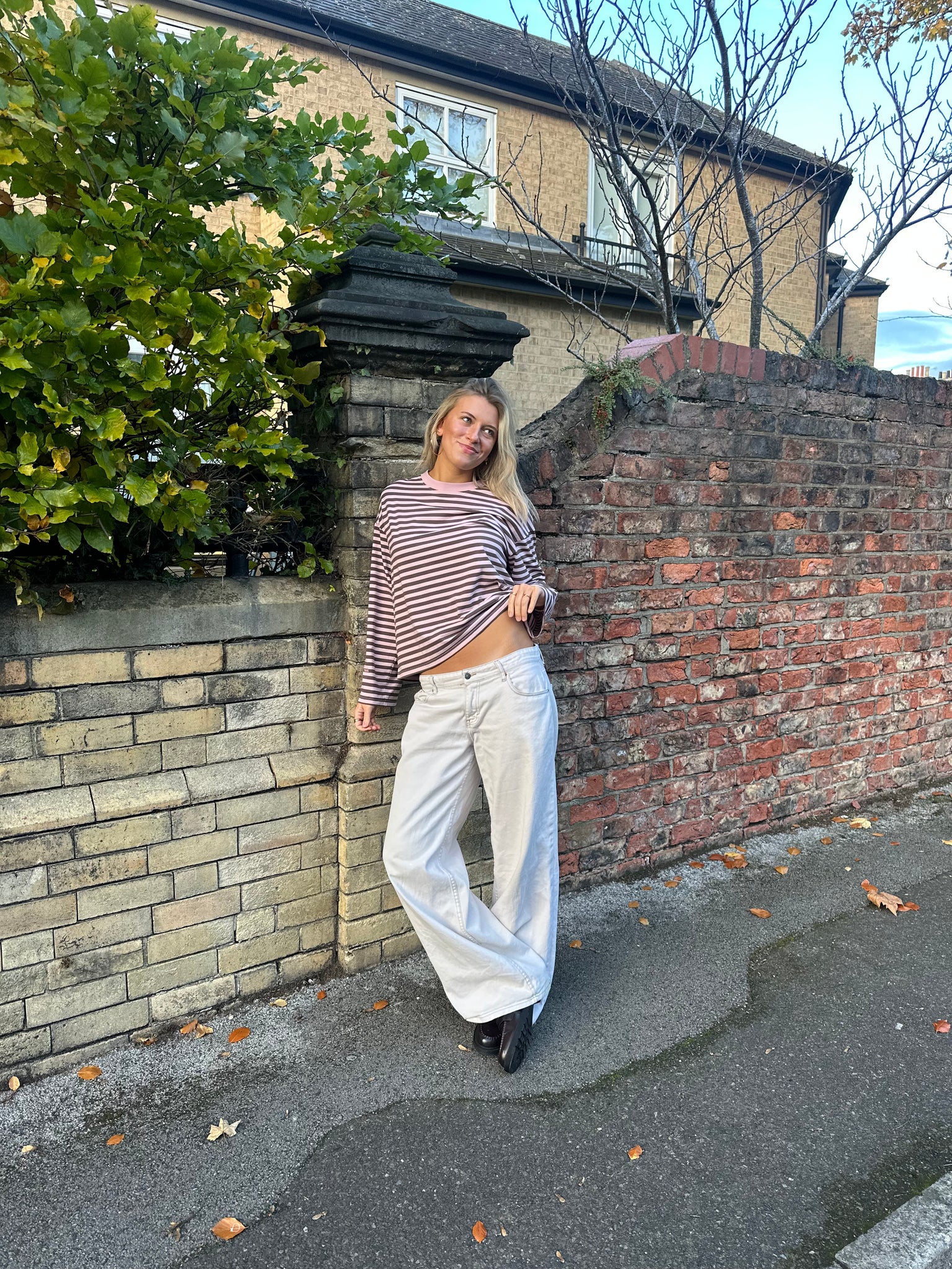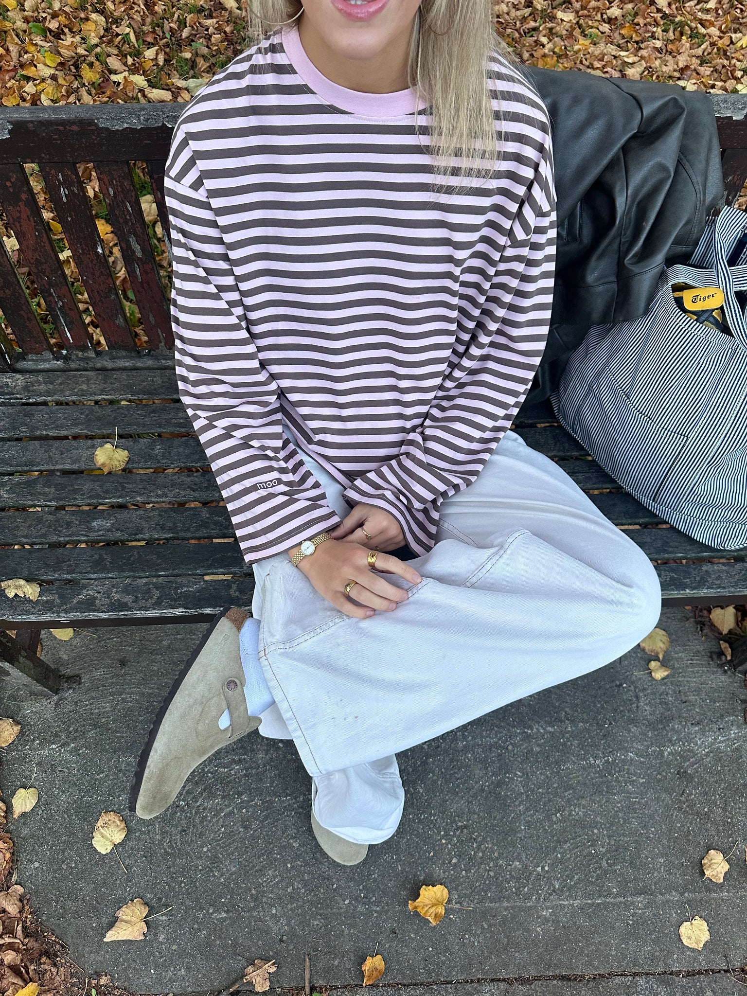 Our new organic cotton oversized long sleeve comes in a wide, boxy fit with wide sleeves that create that relaxed silhouette. The sleeve length is intentionally long, adding to the oversized look. You can choose your regular size to achieve the intended fit. The piece is finished with a moo embroidered detail on the sleeve.